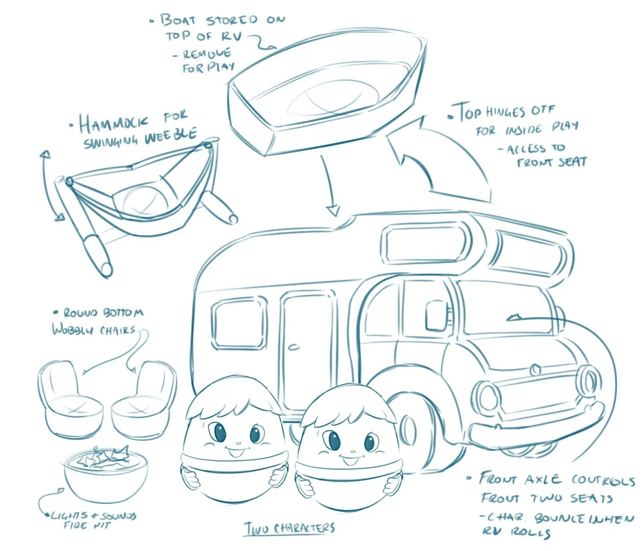 As part of PlayMonster’s acquisition of the Playskool portfolio from Hasbro, I led the redesign of Weebles, one of the most iconic brands in the line. The project began with re-envisioning the core character designs to update their visual language while preserving the brand’s recognizable charm. These characters established the foundation for the broader Weebles line, guiding form, scale, and play patterns as development expanded across additional products.